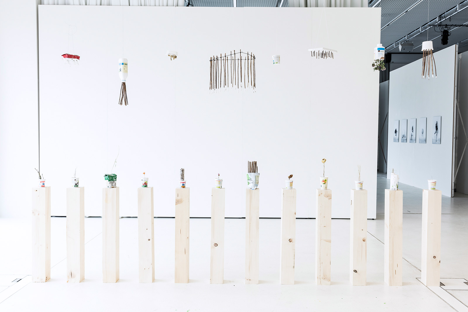 Alleine und doch Teil eines Ganzen — zwischen Massenproduktion und Individualitätsdrang — irren wir umher. Was macht die Masse mit dem Individuum, was das Individuum mit der Masse? Was kommt aus uns selbst, was von aussen? Mit diesen Fragen im Hinterkopf entstand meine Arbeit, in der sich Verpackungen aus Massenproduktion mit individuellen Naturmaterialien verbinden. Wie man sich selbst mit der Masse vereinbaren kann, Gleichheit und Individualität, ein Spannungsfeld jeder menschlichen Existenz, wird untersucht und befragt.